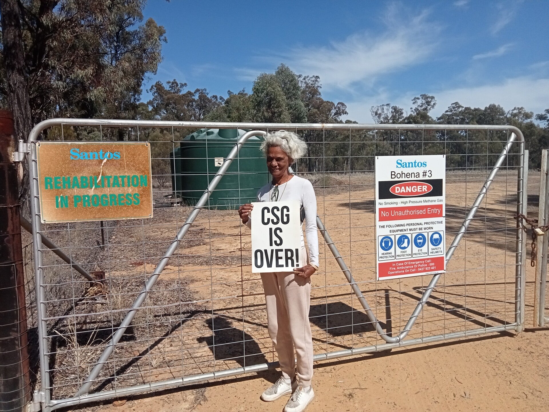 Santos' latest public relations campaign using two state premiers at a recent Energy Symposium (Peter Malinauskus and Chris Minns) and through a sponsorship deal with the Koori Knockout. Neither have respected the wishes of traditional owners in Gomeroi country or the ongoing litigation to keep our country free of gas desecration of our country and its waters.